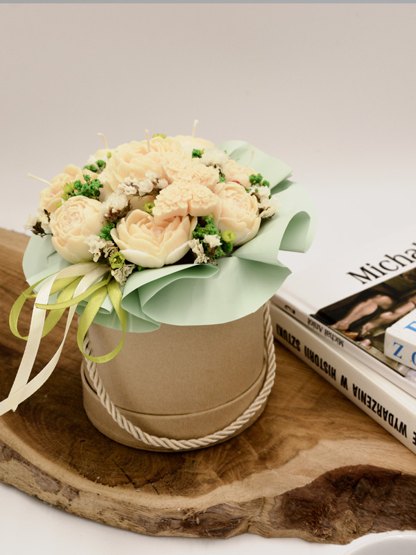 Elegancki Candle Box w stylu Nature Craft z 8 świecami sojowymi w kształcie kwiatów– róż i piwonii. Subtelny, stylowy i pełen uroku! To doskonały prezent dla tych, którzy cenią piękno i wyjątkowe dodatki.