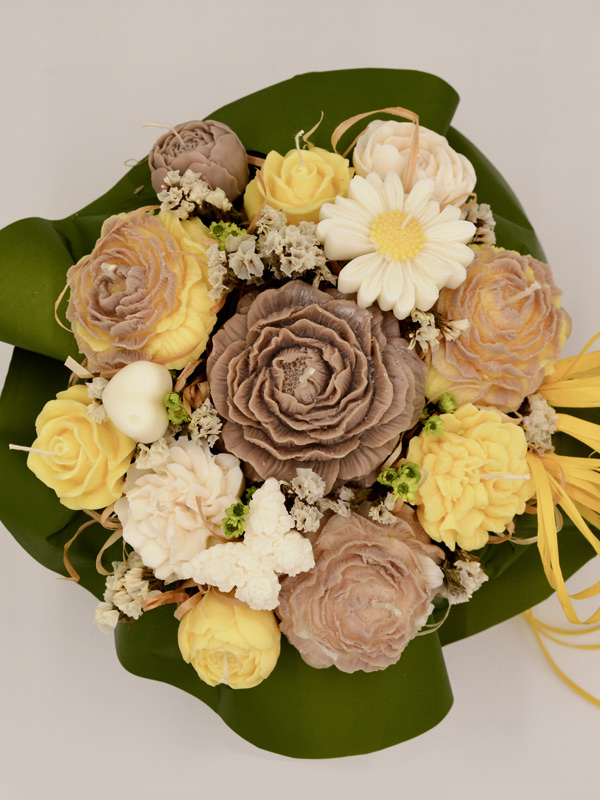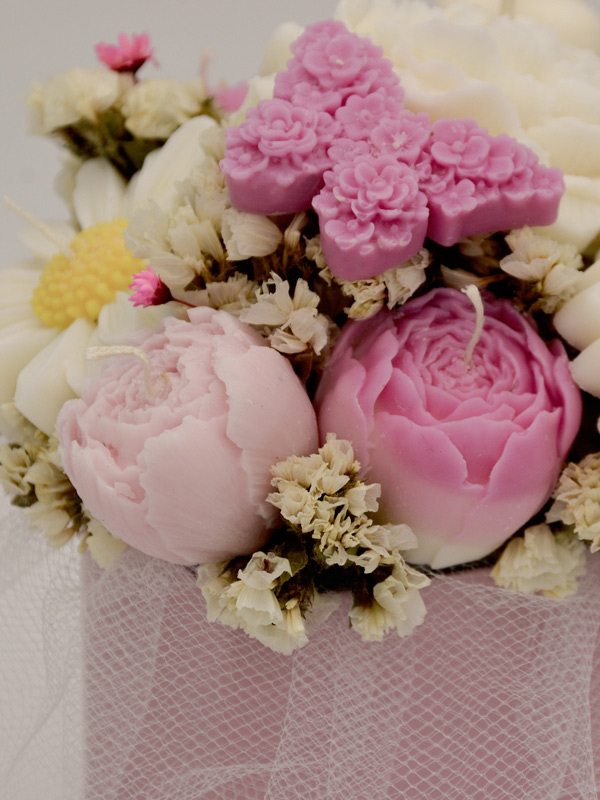 z 7 świecami sojowymi w kształcie kwiatów– stokrotek i piwonii. Subtelny, stylowy i pełen uroku! To doskonały prezent dla tych, którzy cenią piękno i wyjątkowe dodatki.